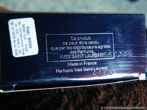 В начальный период (до 1985) на упаковке писали Made in France-Yves Saint Laurent Parfums и запрещали продажу не авторизованным дилерам.